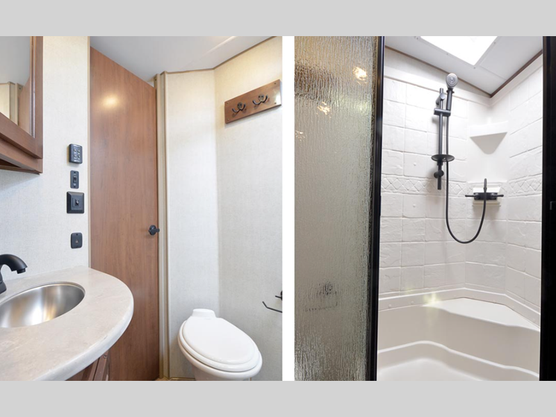 Sleeps 3 Slides 1 Length 29 ft 9 in Ext Width 8 ft Ext Height 11 ft 7 in Int Height 6 ft 11 in Interior Color Sandstone, Stone Basin Hitch Weight 900 lbs GVWR 9995 lbs Cargo Capacity 2995 lbs Fresh Water Capacity 80 gals Grey Water Capacity 50 gals Black Water Capacity 40 gals Tire Size ST235/80/16E Furnace BTU 35000 btu Available Beds Queen Refrigerator Type 12V Off Grid Refrigerator Size 10 cu ft Cooktop Burners 3 Number of Awnings 1 Axle Weight 5200 lbs LP Tank Capacity 30 lbs Water Heater Capacity 10 gal TV Info LR 32" Swing-Out TV Awning Info 21' Axle Count 2 Number of LP Tanks 2 Shower Type Shower w/Seat Solar Wattage 400 watts Similar Floorplans